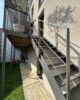 Terrasse suspendue avec escaliers et garde corps pour une maison neuve individuelle
