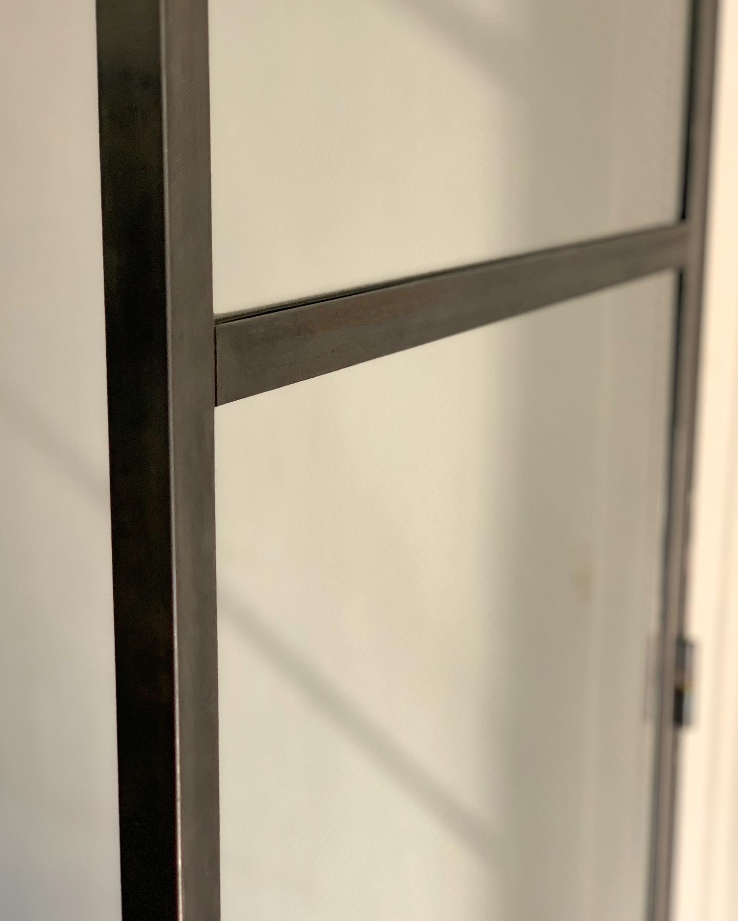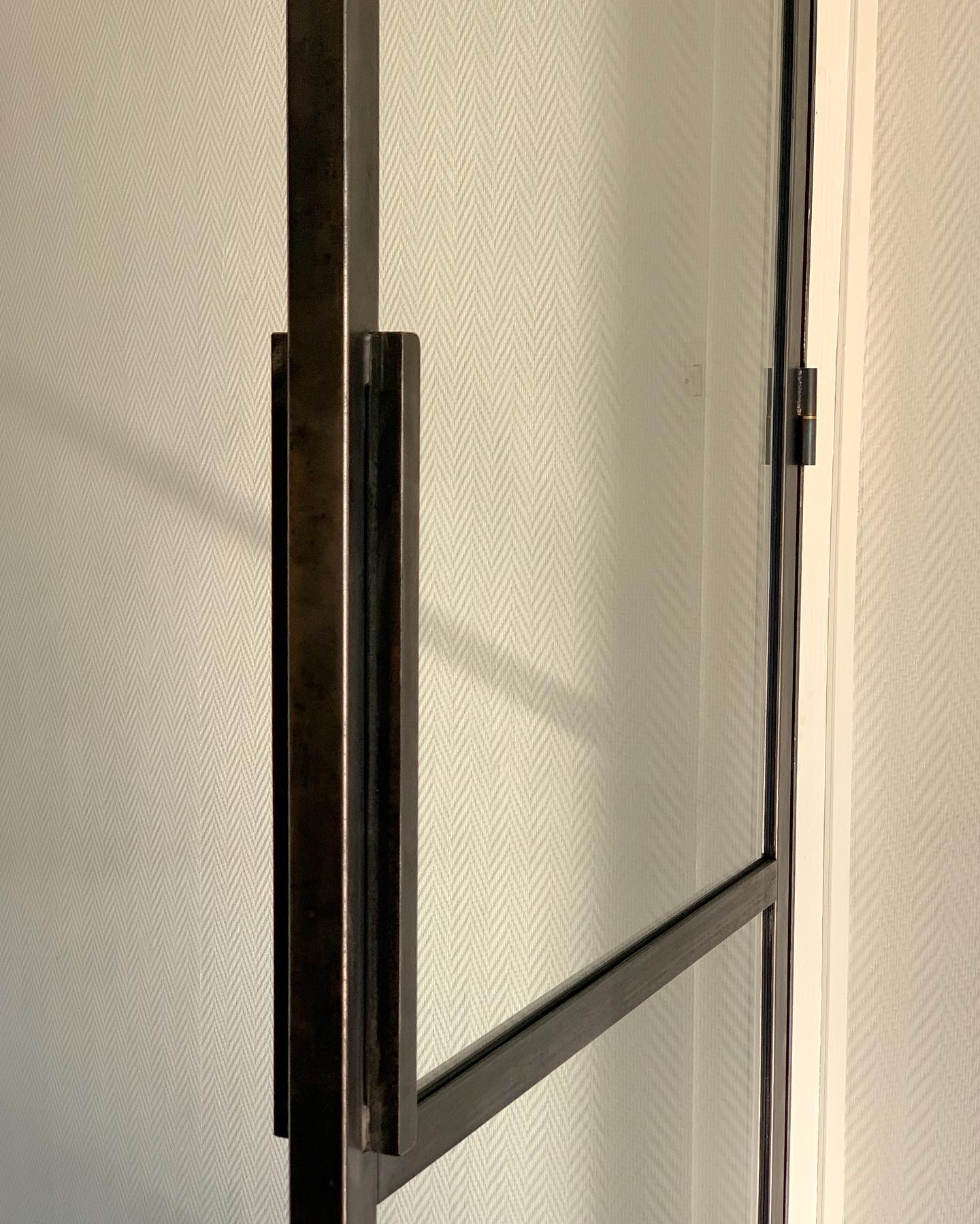 Porte avec 3 séparations. Remplissage en verre. Poignées intégrées soudées.